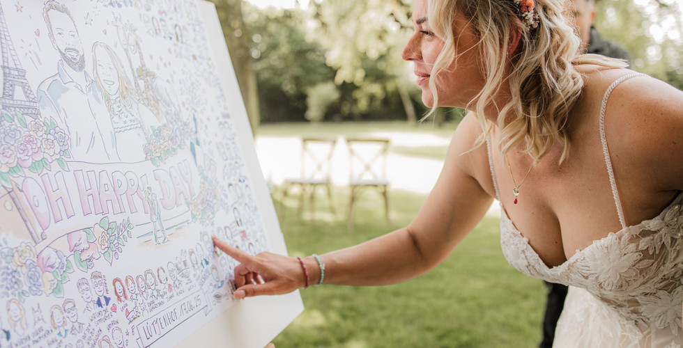Zwischendurch gab’s eine kleine kreative Verschnaufpause: Bei Julia von Wedding Sketch (https://www.weddingsketch.de/) konnte man sich als gezeichnete Erinnerung verewigen lassen.