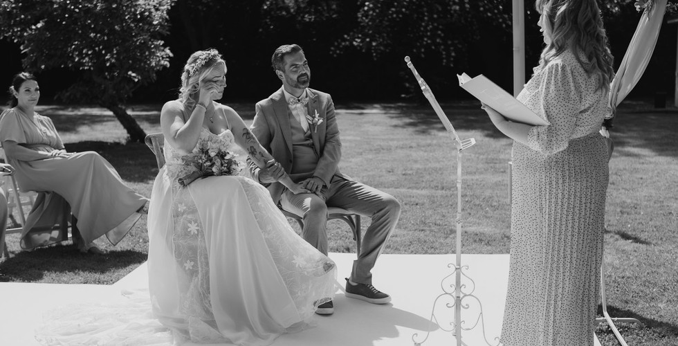 Die Blicke, die sie sich während der Zeremonie zugeworfen haben… die Lacher über die liebevollen Eigenheiten des anderen… die Worte der Trauzeugin, die ihre Liebe aus einem ganz eigenen Blickwinkel beleuchtet hat. All das hat sie sichtlich berührt. Und dann kam der große Moment.